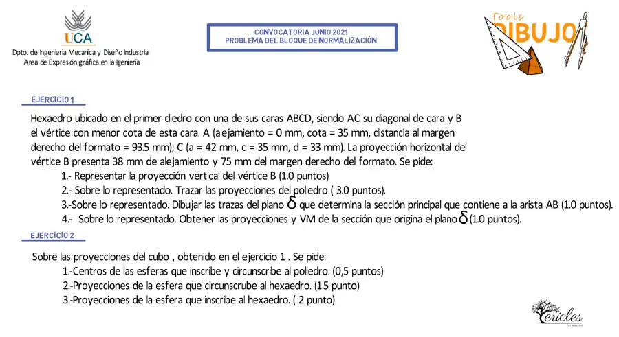 Podrás encontrar parte de los apuntes, anotaciones y demás información de los bloques de Diédrico y Normalización que se encuentran en el AULA VIRTUAL PERICLES, además de los trucos Pericles para facilitar la resolución de ejercicios de examen..